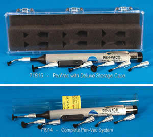 這是一款新型的用來拿取小的、片狀的物體的工具,常見與電子集成業(yè)、珠寶業(yè)、制模等等。在電鏡室,Pen Vac™也是很得力的一個工具:可以用來拾取銅網(wǎng)微柵、取樣品托、排膜、載玻片、蓋玻片等等,支撐時間可達(dá)一分鐘。