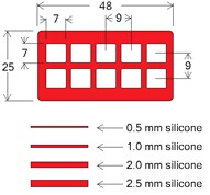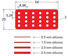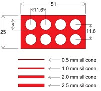 硅膠隔離貼片,又稱硅膠墊密片、試劑壩、硅膠貼封片等??捎糜谕恍酒系亩鄻悠贩磻?yīng),珍貴微量樣品的檢測(cè)等等。隔離片可使加樣更準(zhǔn)確,防止樣品間的交叉反應(yīng),且與配套雜交反應(yīng)蓋片合用還可使加樣更容易,反應(yīng)和雜交更均勻,防止反應(yīng)液揮發(fā),避免空氣中灰塵污染,是各種微陣列芯片進(jìn)行雜交或免疫反應(yīng)的理想輔助工具。該產(chǎn)品可以壓力粘貼,可干凈去除。硅膠屬于惰性材料,對(duì)生物樣品無(wú)不良影響,如果用來(lái)培養(yǎng)敏感性細(xì)胞,建議選用新型的無(wú)色透明的CultureWell硅膠貼片。