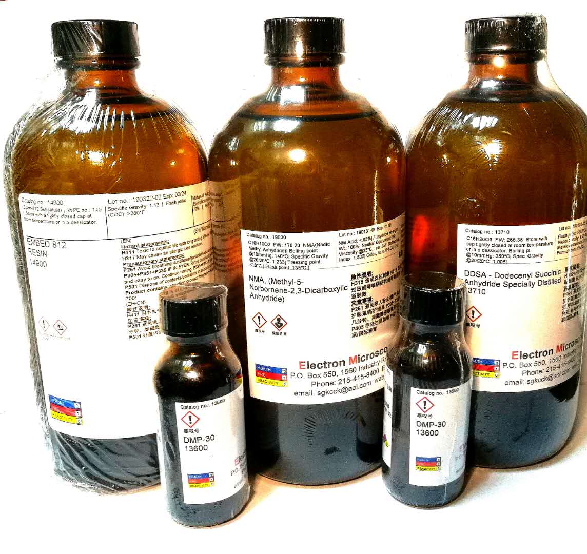 使用時注意,EMbed 812 可能會腐蝕所接觸到的塑料。應用Epon-812樹脂的所有配方均適用于Embed 812,例如Luft's 配方, Mollenhauer's and EPON-ARALDITE 混合物配方。