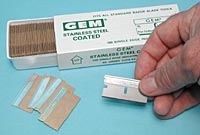 2、不銹鋼三刃單面刀片,PTFE包被, Gem Scientific出品,抽屜紙盒包裝,每盒100片。