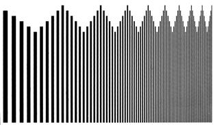 可變線性光柵測試靶, 提供90根線條,分布總寬度是100mm。分辨率從1.25線對/毫米到250線對/毫米,該測試靶主要用來確定光學系統的分辨率。線條長度變化可以幫助數數。由低反射率、真空濺射的鉻電鍍到厚0.175mm厚的聚酯膜上.