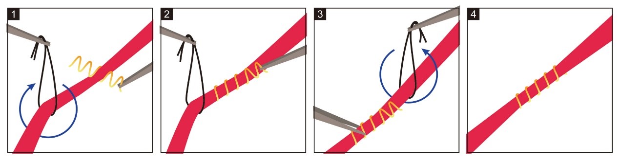 小鼠雙側(cè)頸總動(dòng)脈縮窄術(shù)一般在體視顯微鏡下操作,用無(wú)磁性精密鑷子拿取微彈簧圈,注意彈簧圈的鋼絲很細(xì),夾持不好容易崩走丟失,操作務(wù)必小心謹(jǐn)慎,不要扎破操作的血管。