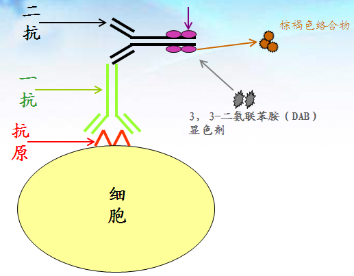 ?? 原理:利用抗原與抗體的特異性結(jié)合原理和特殊的標(biāo)記技術(shù),通過化學(xué)反應(yīng)使標(biāo)記抗體顯色,對組織細(xì)胞內(nèi)的特異性抗原進(jìn)行定位、定性、定量檢測的一門技術(shù)。