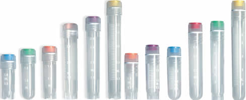 可以用來裝盛生物學樣品、人或動物的細胞等,溫度耐受至-195℃。有白色可書寫區(qū),有配套的有顏色管蓋來區(qū)別不同的樣品。管蓋與管子材質(zhì)相同,具有相同的膨脹系數(shù)