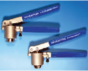 手動(dòng)封口鉗EZ Crimper™又稱手動(dòng)壓蓋鉗(器),軋頭可調(diào),確保蓋緊和光滑。使用:按上鋁蓋后,放進(jìn)軋頭內(nèi),上下輕輕按手柄,壓到軋頭收緊為止,(不必過(guò)分用力)放松手柄,即恢復(fù)原位置。用三手指檢查瓶蓋不松動(dòng)即可。