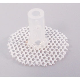 與所有標(biāo)準(zhǔn)的皮膚扣件一樣,小鼠的皮膚扣包括硅膠筒和圓形滌綸網(wǎng)狀小片兩部分,是動物的手術(shù)中不可或缺的物件。硅膠筒內(nèi)徑為0.123英寸;滌綸網(wǎng)狀小片的直徑大約1英寸。皮膚扣作為導(dǎo)管通過皮膚的一個(gè)通道,協(xié)助完成導(dǎo)管的取樣或定量給藥工作。皮膚扣可替代小動物的jacket,可保護(hù)導(dǎo)管通過點(diǎn)的皮膚免受損傷,降低感染的幾率。也可與外徑為0.124英寸的標(biāo)準(zhǔn)不銹鋼彈性細(xì)絲完美匹配。